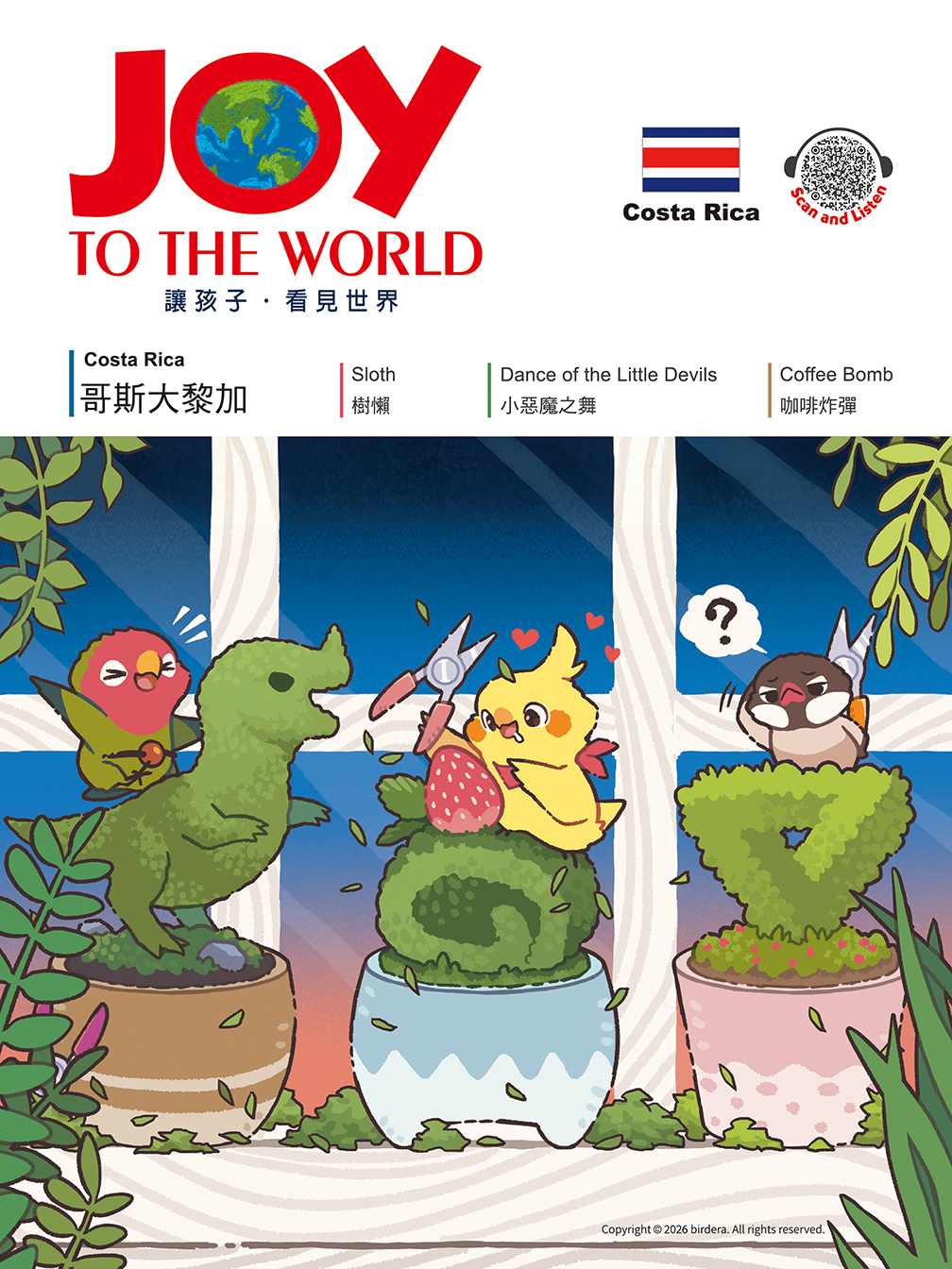 《JOY TO THE WORLD》適合親子共讀,每期介紹一個國家地方的自然景觀與人文風情,結合豐富有趣的故事、遊戲及DIY等單元,讓孩子自然使用英語,開啟國際觀、認識全世界!